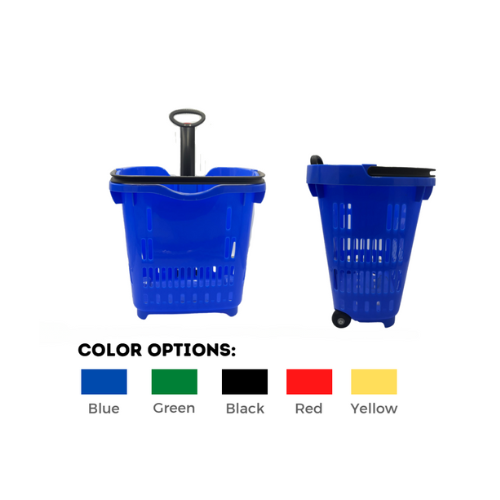 Attention Grocery Store Owners: Revolutionize your customers' shopping experience with our exclusive Large Shopping Basket with 2 Wheels, designed to enhance convenience and streamline the checkout process. Available in a spectrum of colors – Black, Blue, Green, Red, and Yellow – our basket is the perfect addition to your store's shopping amenities.